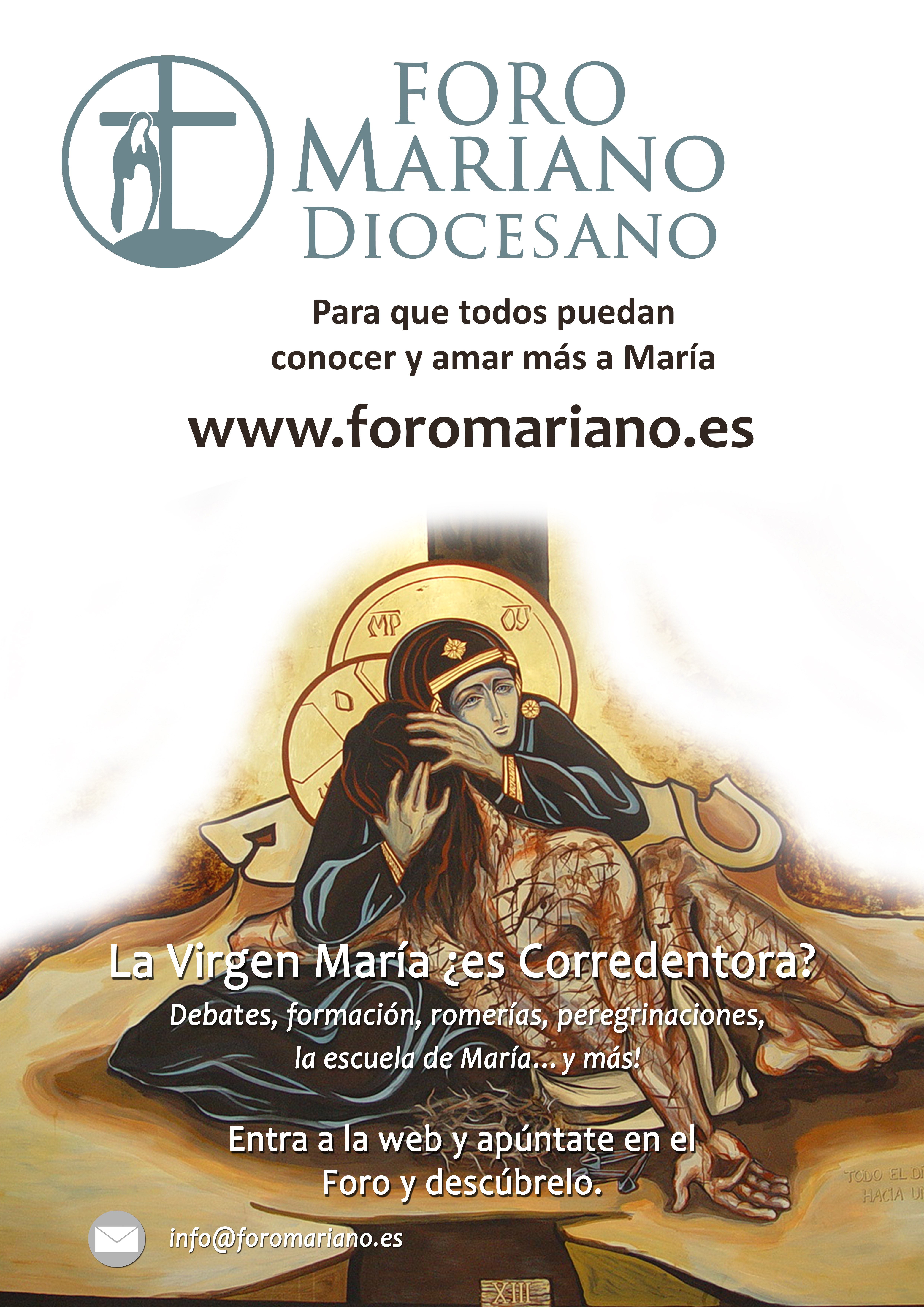 - Propaganda e información del Foro Mariano: si quieres dar a conocer el Foro para que muchos se apunten y así amen más a María, imprime tú mismo la propaganda y úsala. Puedes descargar el folleto informativo en formato de tríptico, así como el cartel en su modelo A y en su modelo B.